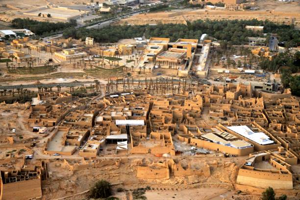 Dirriyah is a large, walled, earth city that was once the thriving first capital of Saudi Arabia before its destruction by the invading Egyptian army in 1818. The buildings have survived in various stages of ruin since that time with some areas of 20th Century reoccupation. Some buildings have recently been restored and/or reconstructed. The majesty of some of the buildings can still be understood with their high fortified walls still standing tall whilst others have crumpled to the ground.